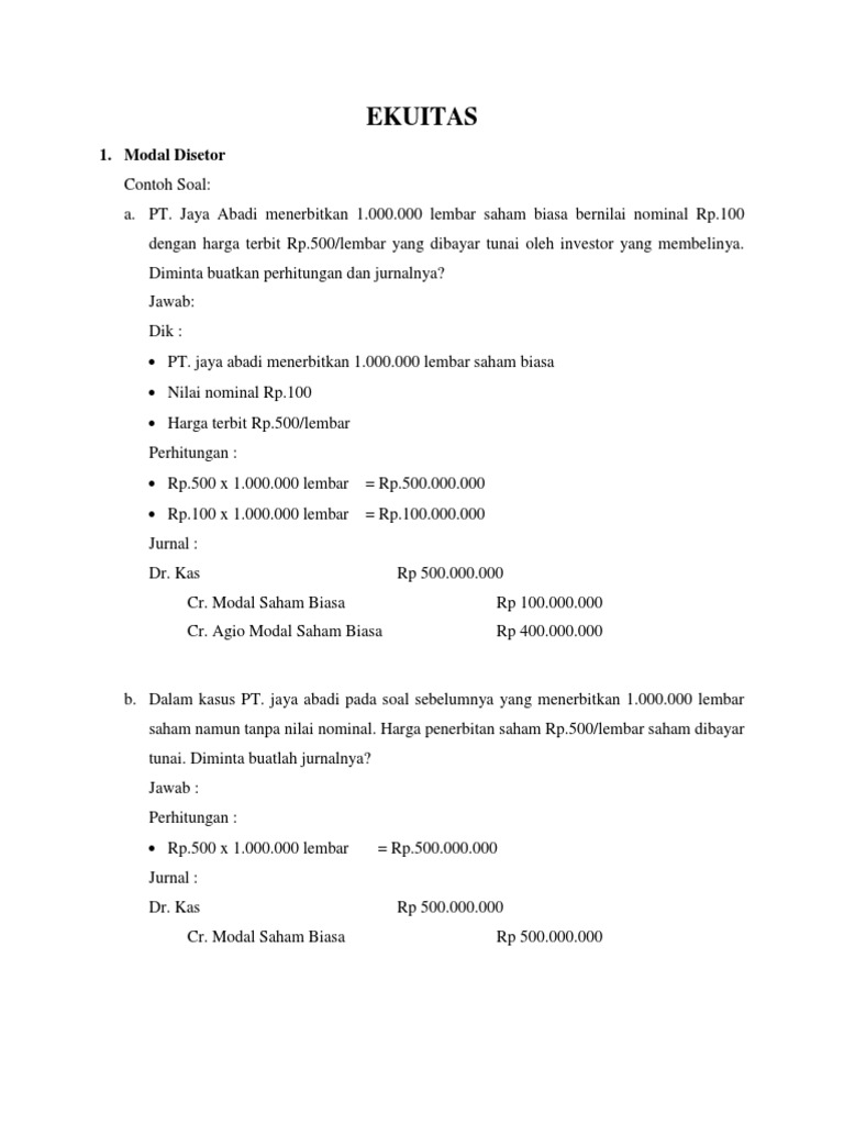 Contoh Soal Perhitungan Saham / Contoh Soal Materi Laba Persaham Dan Solusinya Doc Jawabanku Id - Berikut contoh soal perhitungan saham prioritas dan saham biasa:. Contoh soal saham preferen, contoh soal dividen saham, dividen property bahkan juga dividen likuidasi juga sangat dibutuhkan dalam rencana untuk memperoleh info yang lebih baik, jika perusahaan tidak bisa melakukan pembayaran. Investasi dalam saham, pemahaman, unsur dan contoh soal perhitunganya agar semakin memahami bagaimana saham bisa berjalan dengan lancar ke depan. Dimana pada perhitungan saham ini memberikan pemahaman tersendiri jika ingin melakukan investasi saham secara baik dan benar. Biaya yang perlu dikeluarkan oleh pt abc agar saham tersebut terjual adalah sebesar $2 per lembar. Anda sudah mengetahui apa itu eps dan rumus eps.